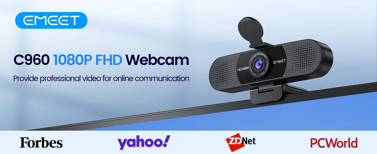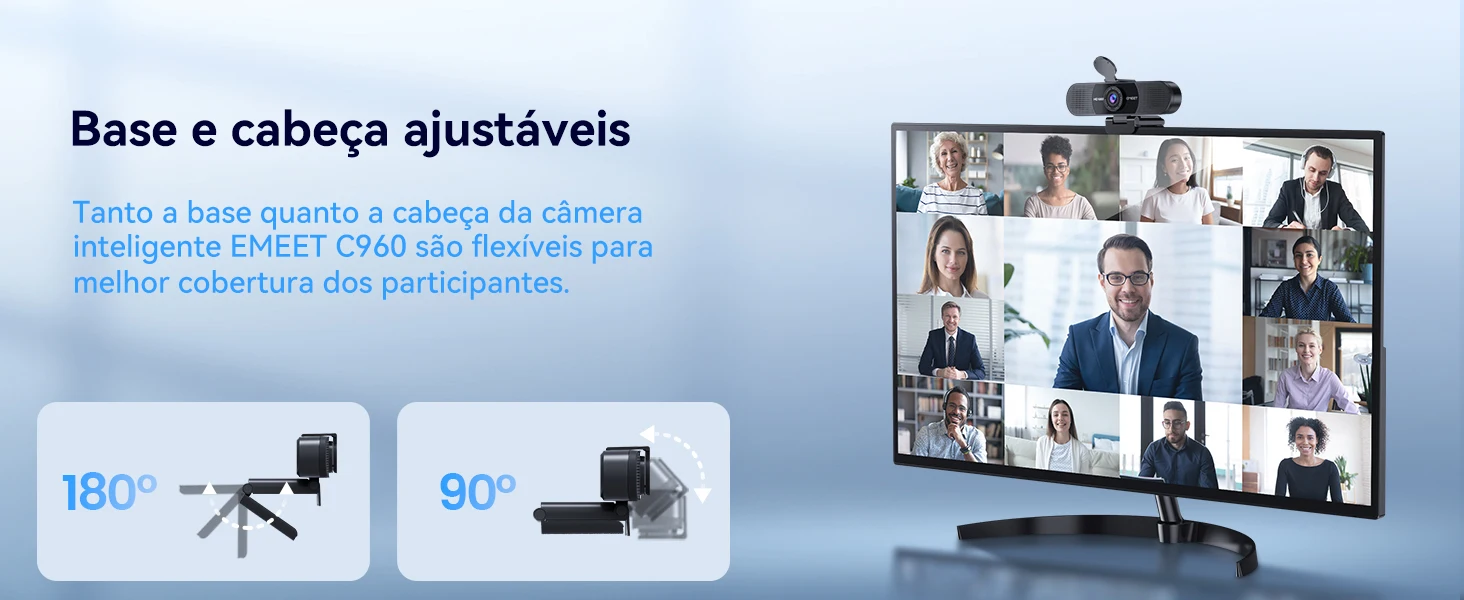 Tanto a base quanto a cabeça da câmera inteligente EMEET C960 são flexíveis para melhor cobertura dos participantes.