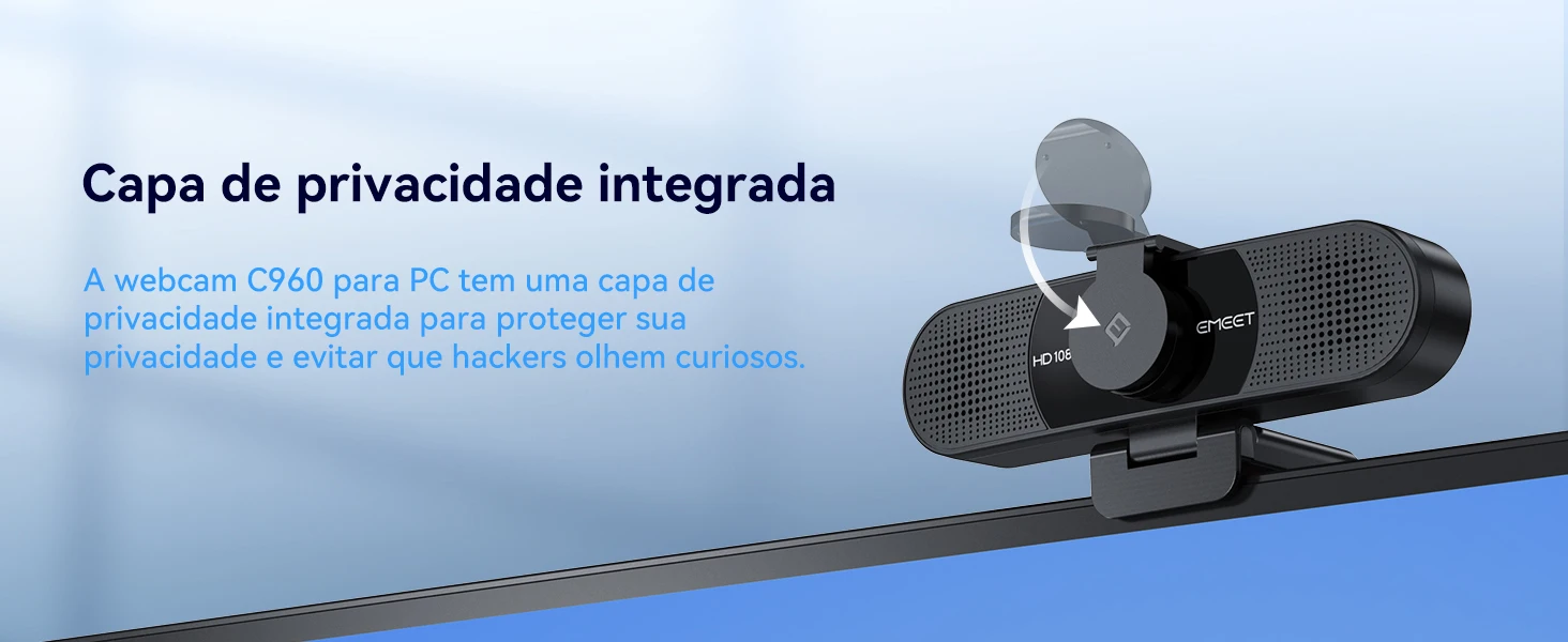 A webcam C960 para PC tem uma capa de privacidade integrada para proteger sua privacidade e evitar que hackers olhem curiosos.