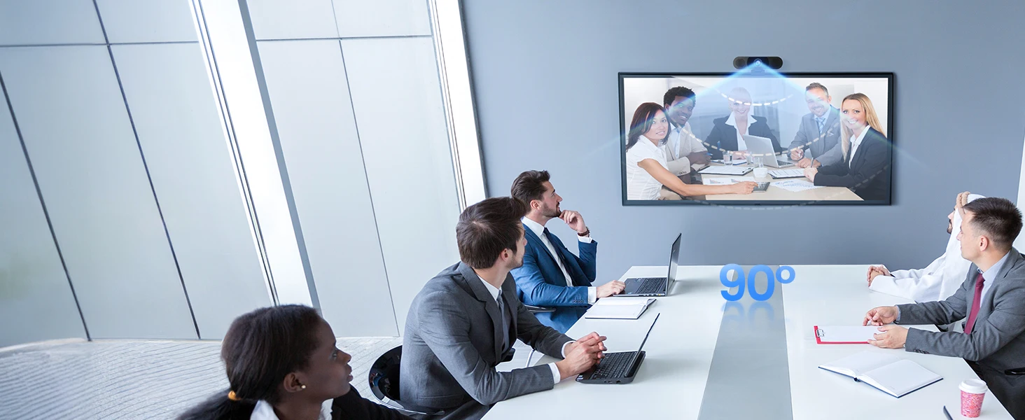 Com um FOV de 90° mais amplo, esta câmera web pode acomodar mais participantes.